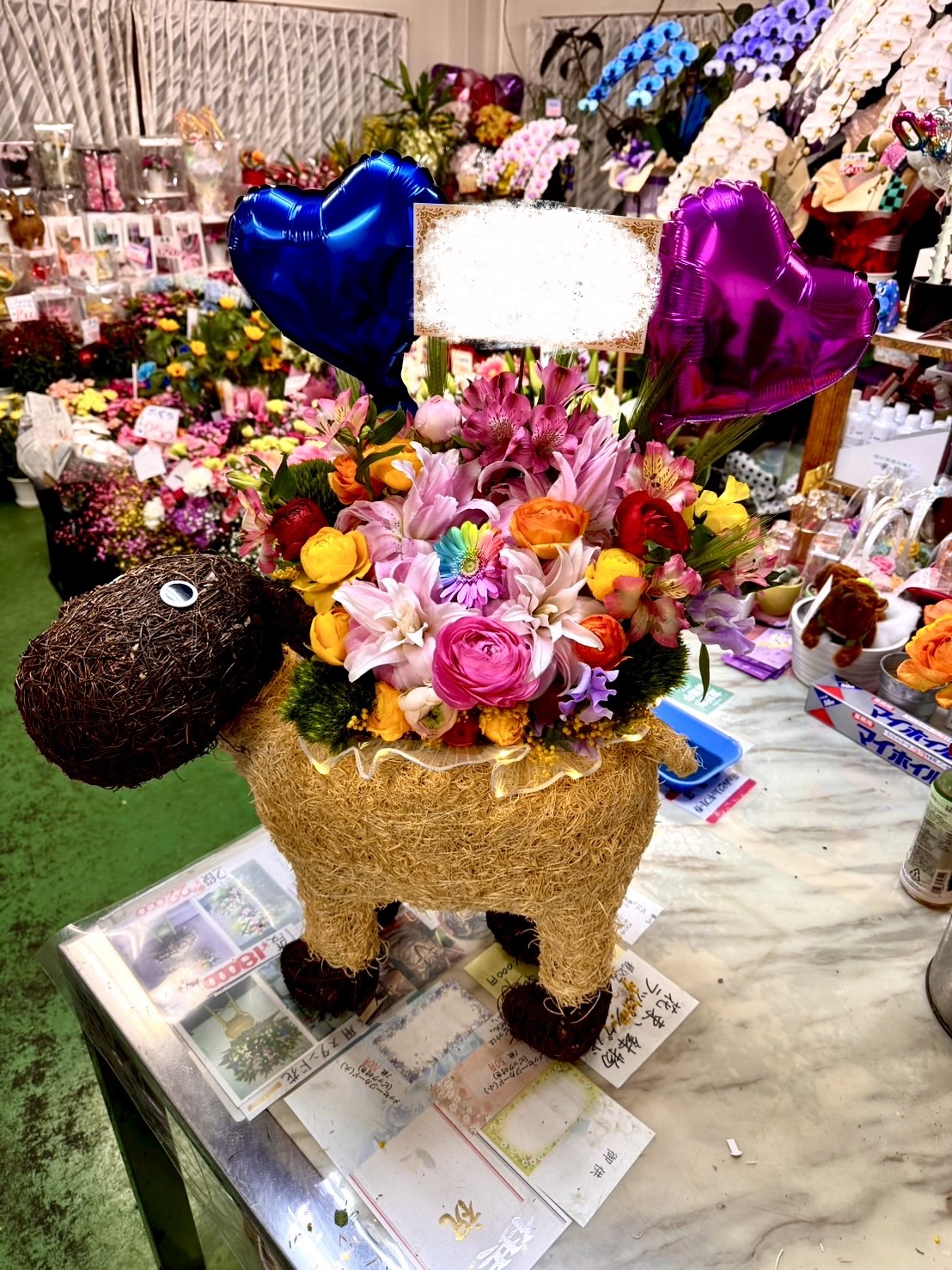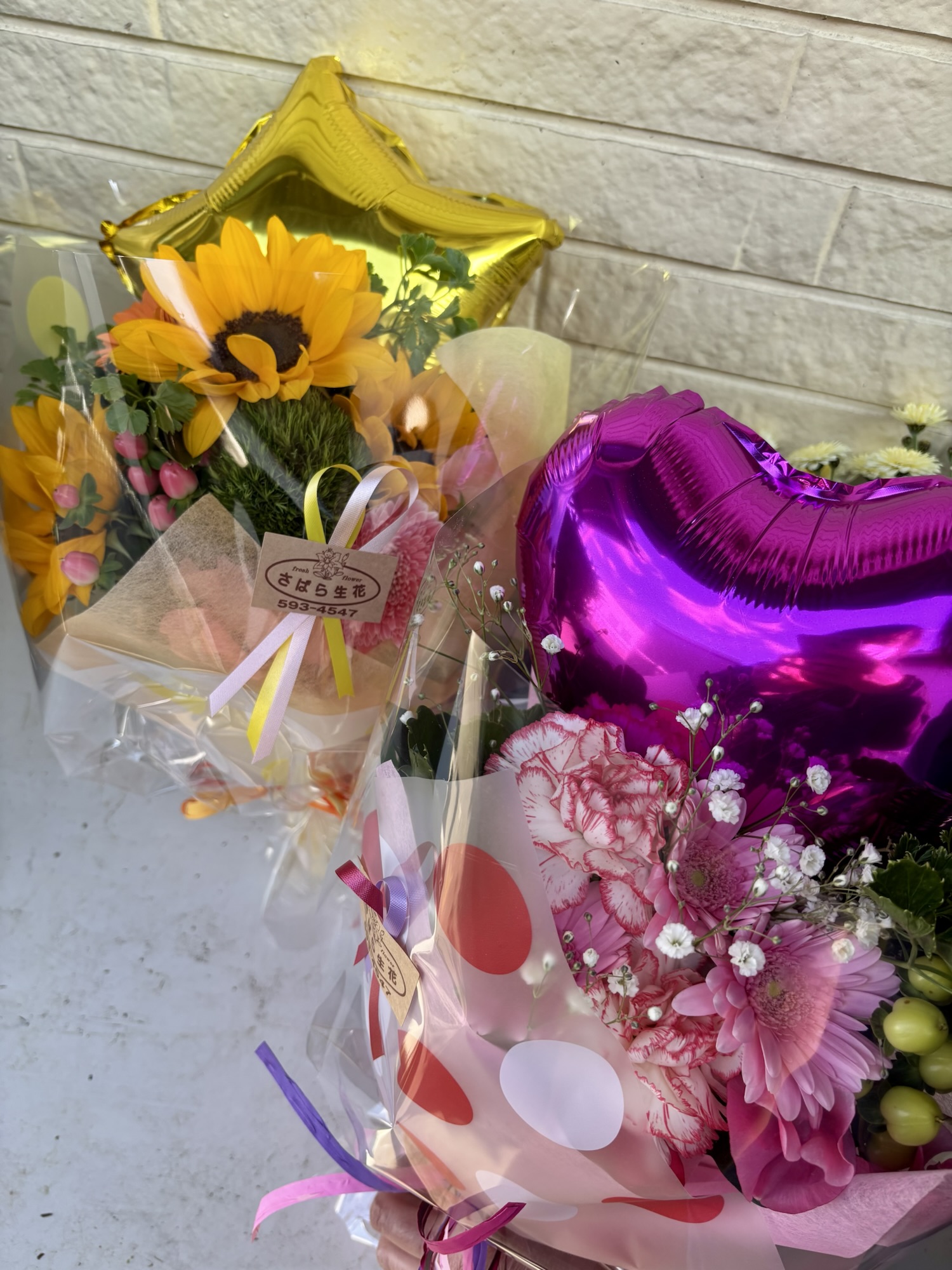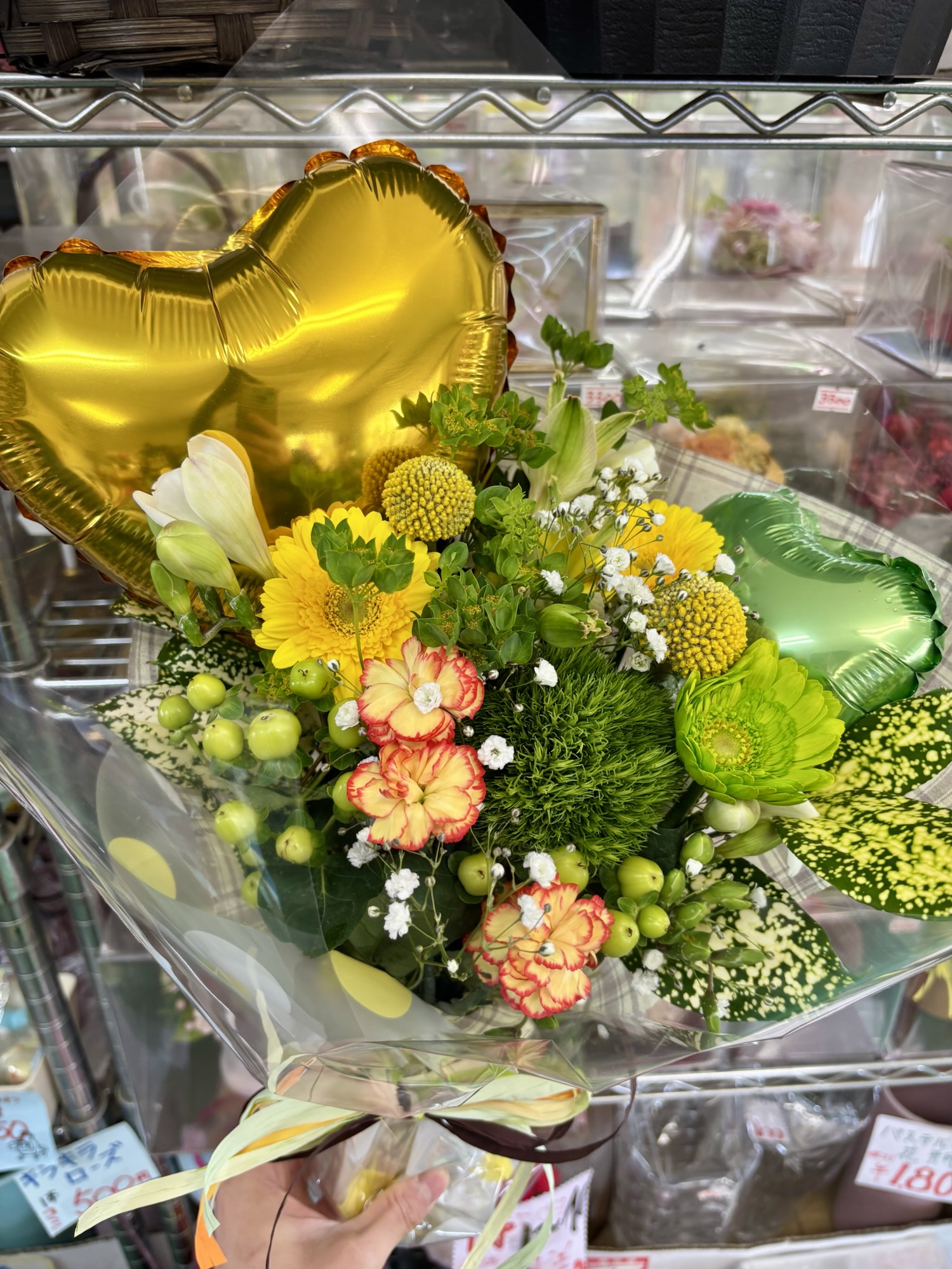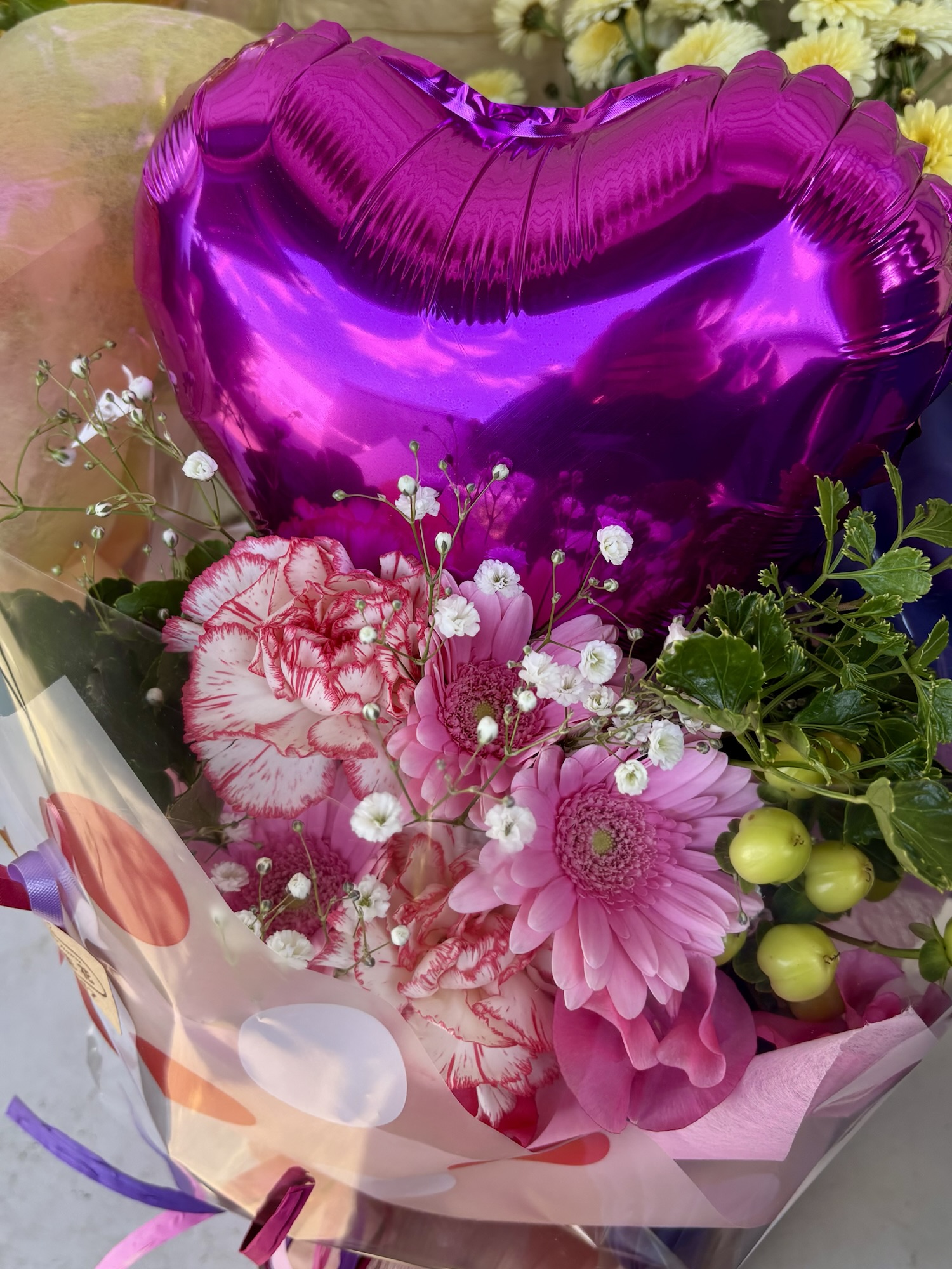 バルーン入り花束が現在人気です カワイイですよ
