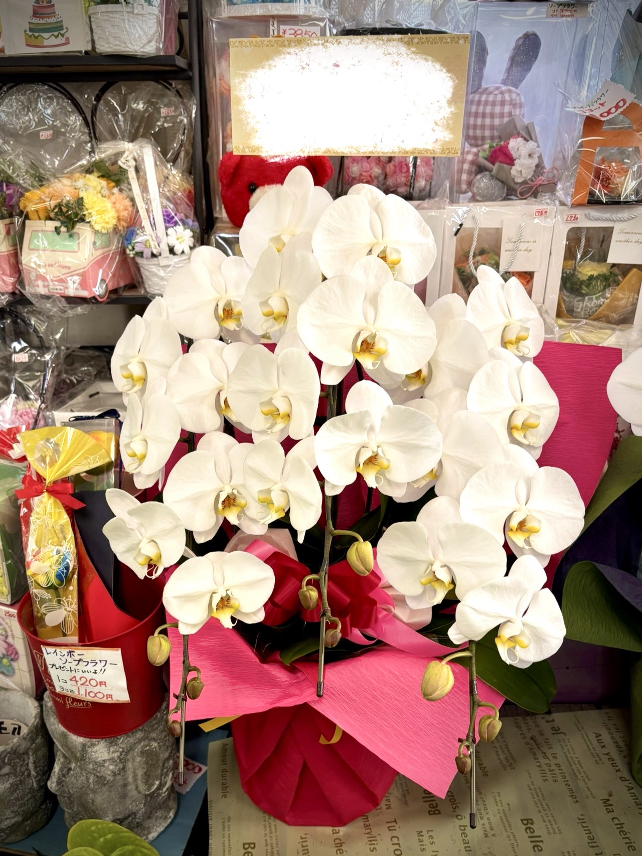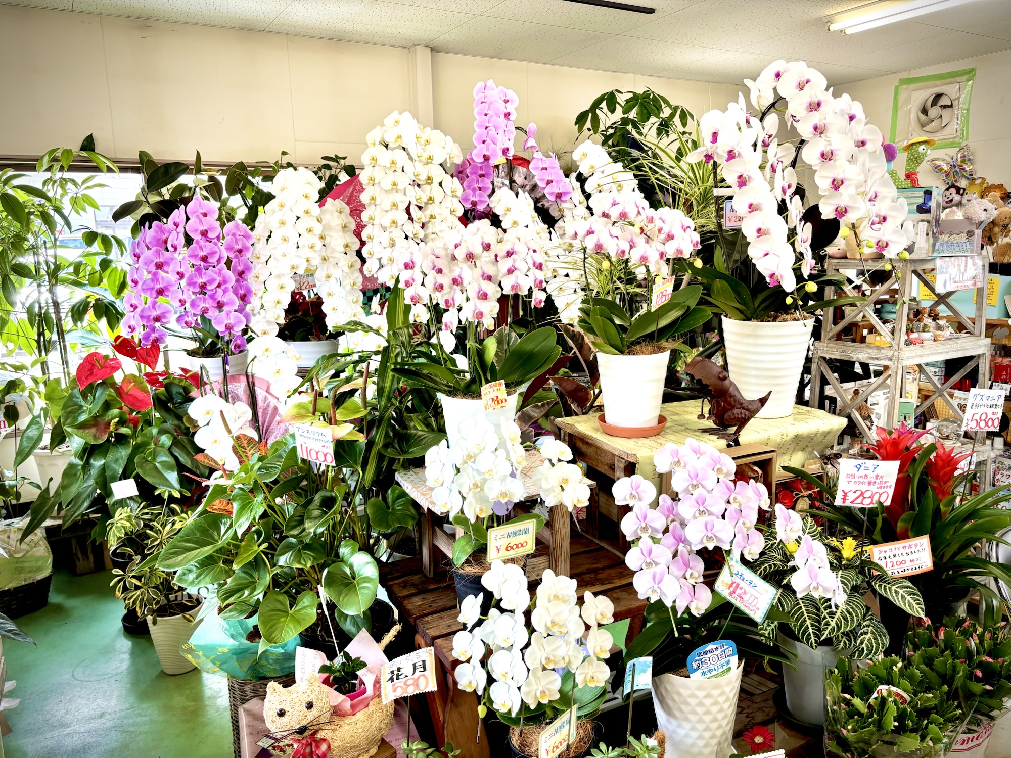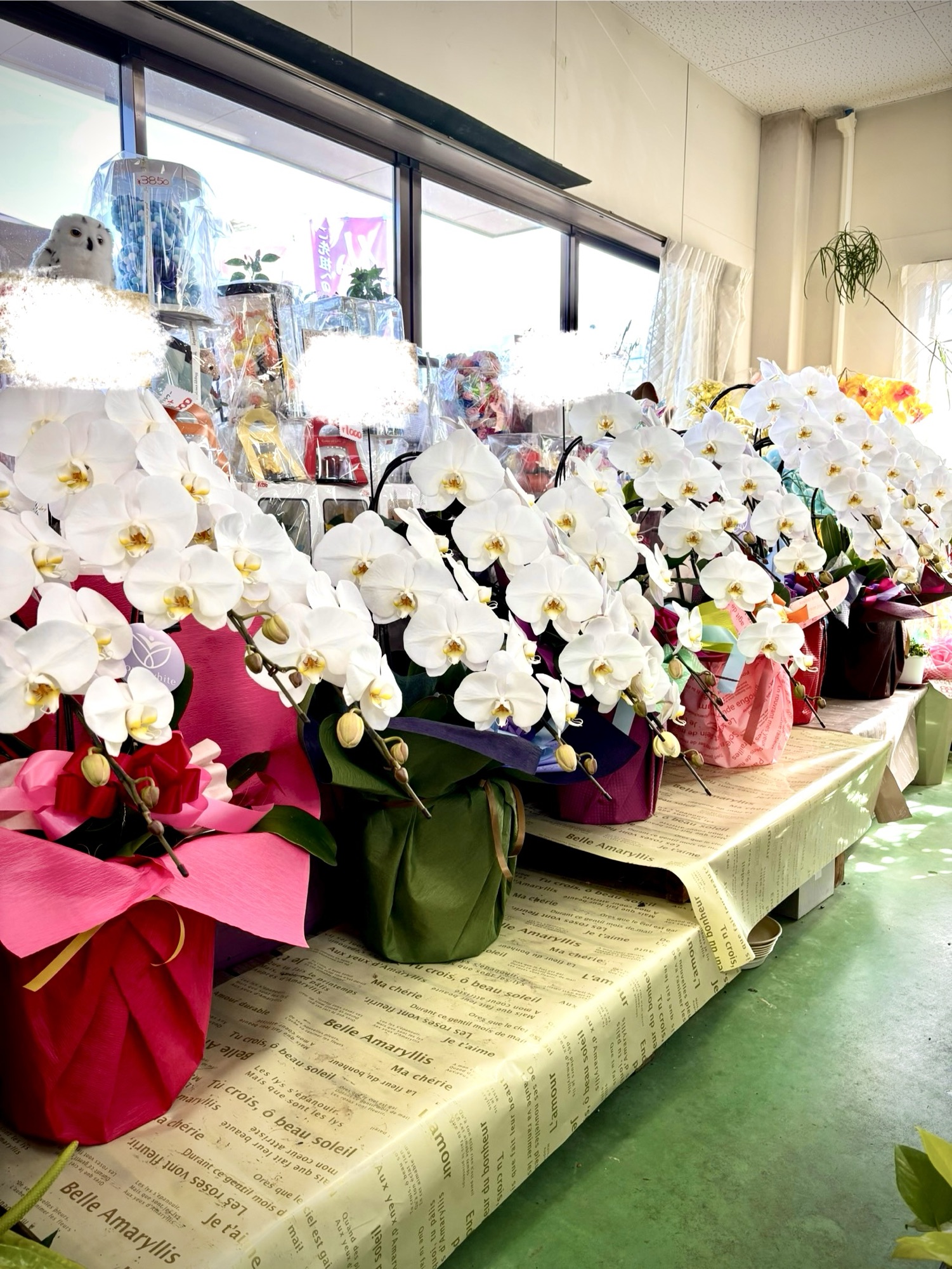 - 当店には常にたくさんの胡蝶蘭が置いてありますので、ぜひご来店ください!