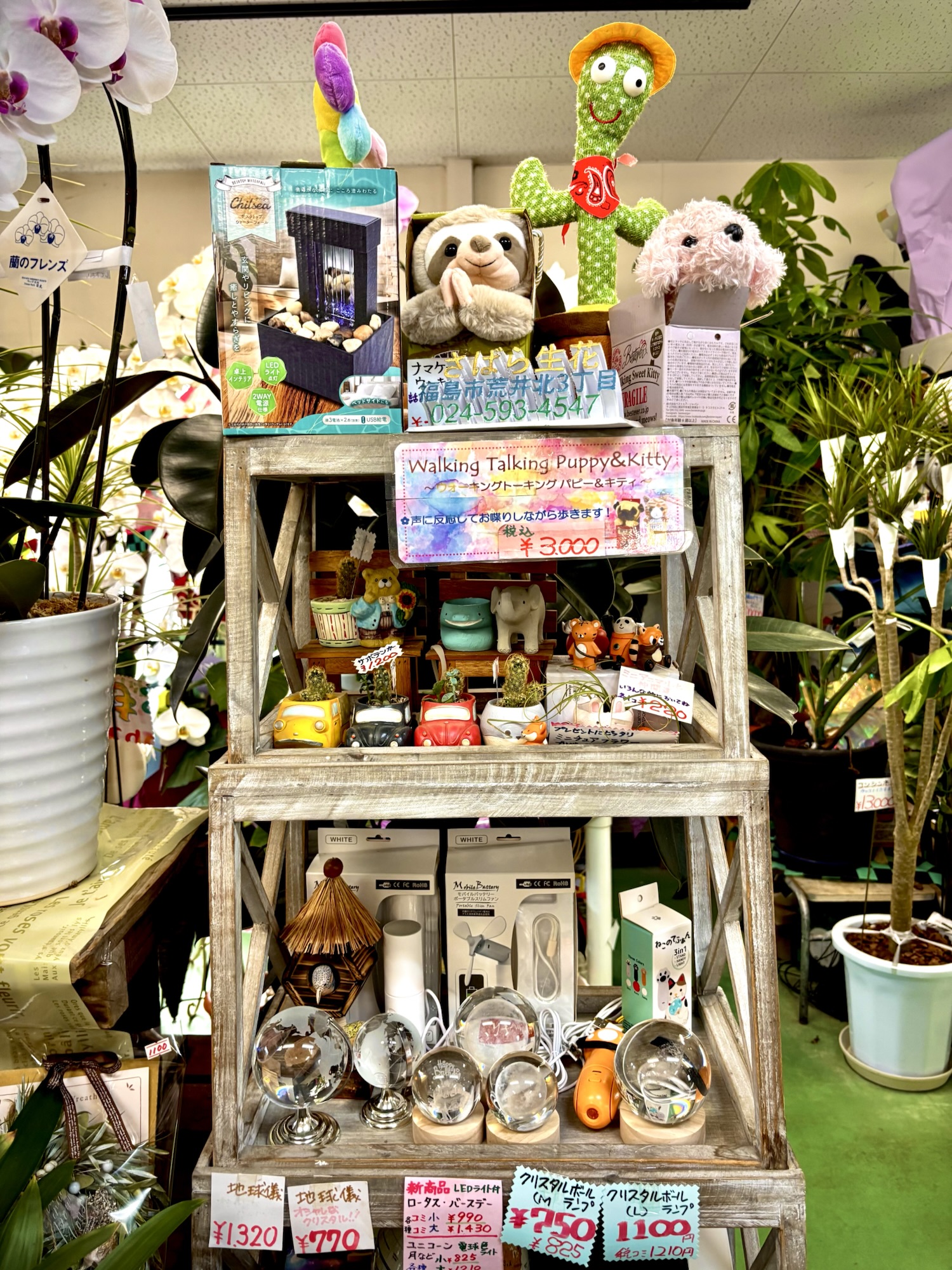 - ご自宅に、プレゼントに、アレンジや花束に挿すピック、動物の苗ポットなどなど…大量の雑貨がございますのでぜひご覧ください。