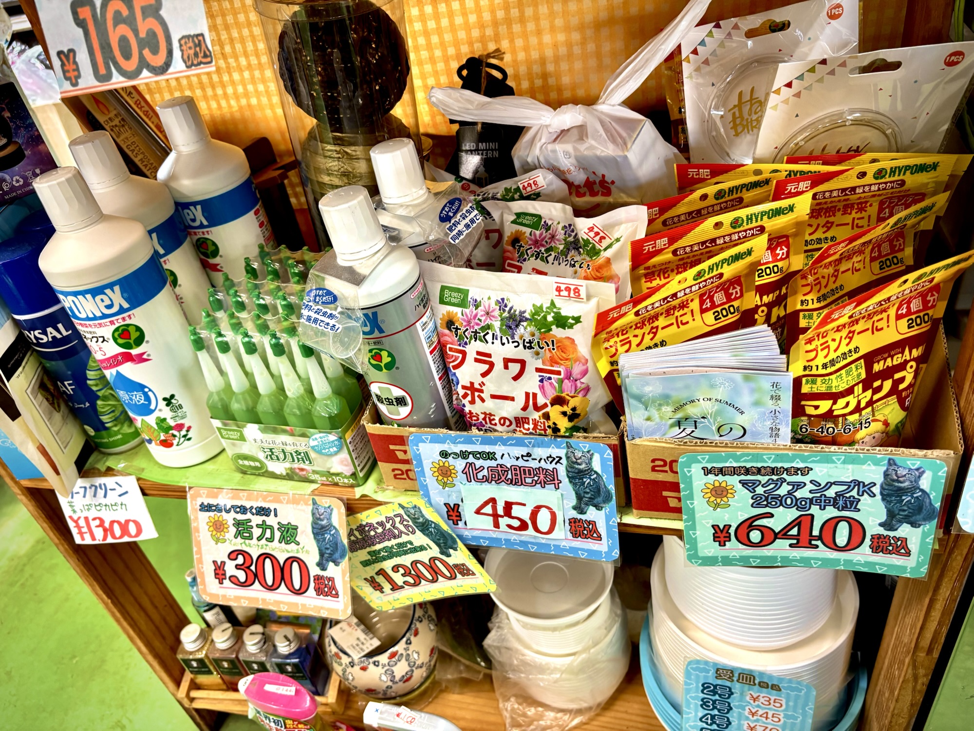 - 線香やチャッカマン、花立て、培養土、肥料など