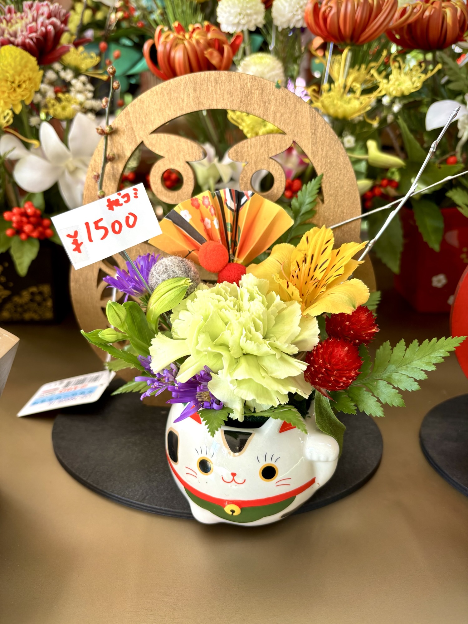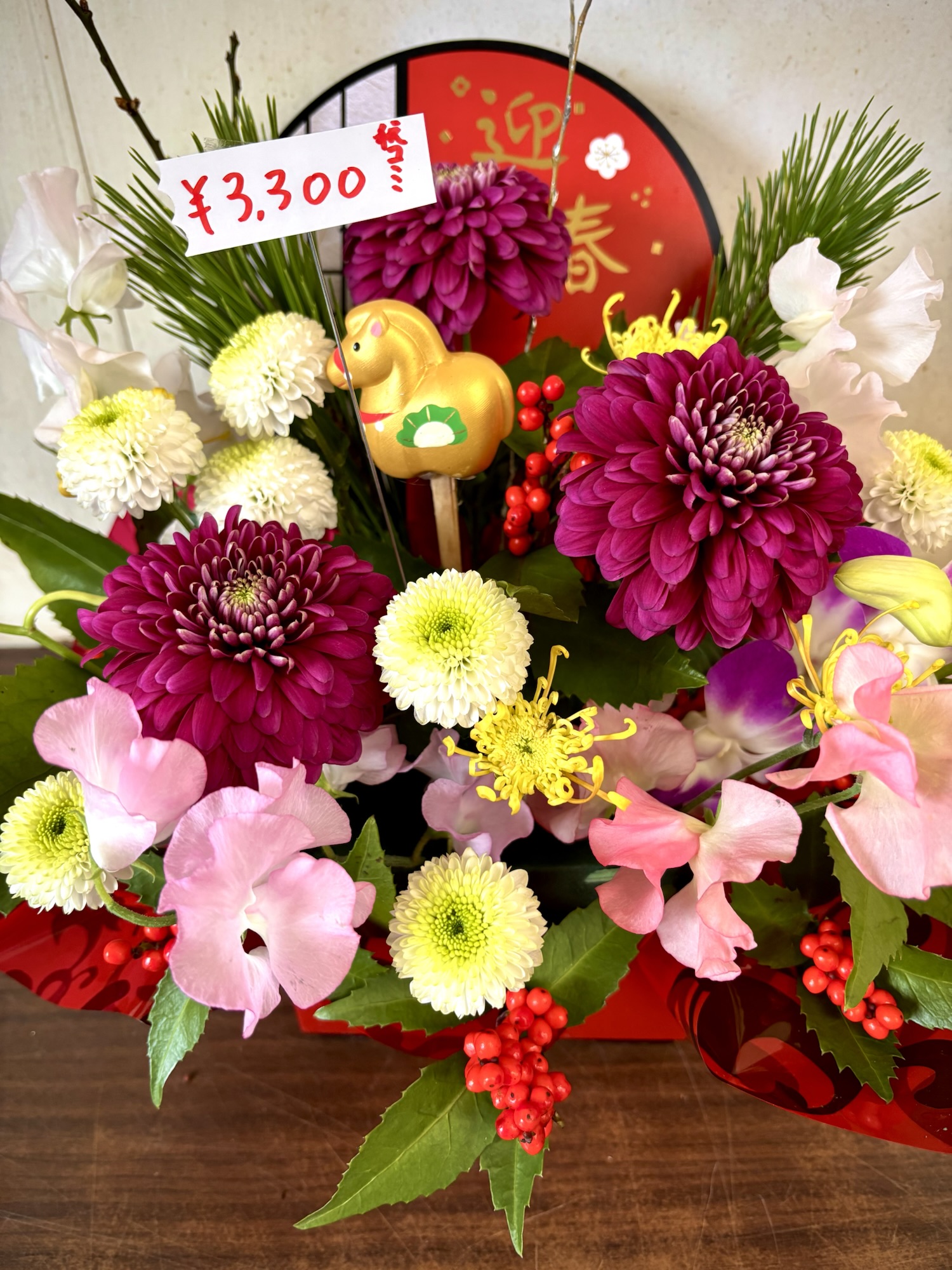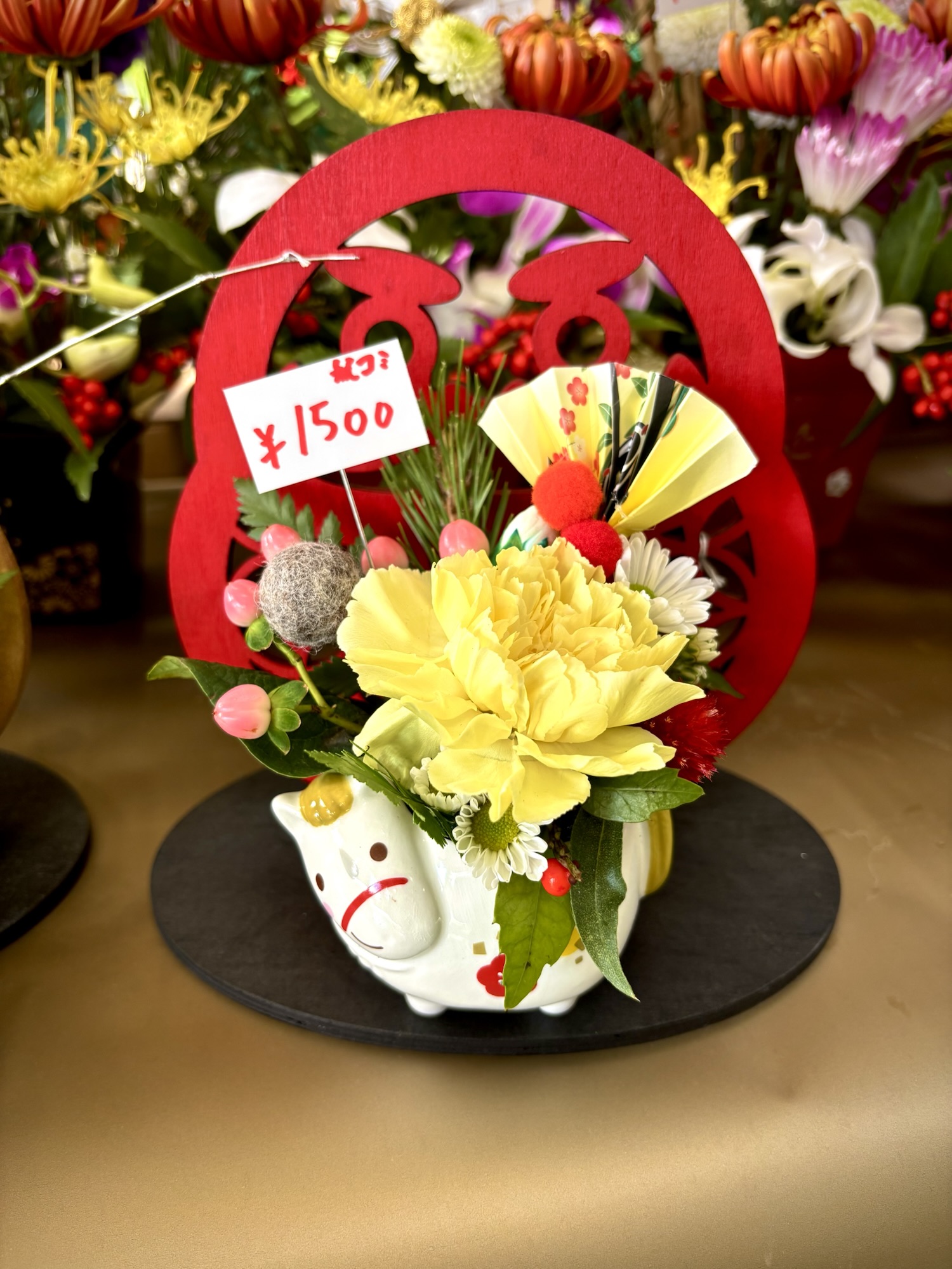 馬の器のなどお正月らしいアレンジメント制作致しました